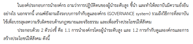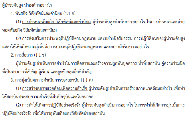ส่วนที่ 3 องค์ประกอบที่ 1 การนำองค์กร (Criteria 1.1 การนำองค์กรโดยผู้นำระดับสูง (Senior Leadership))
