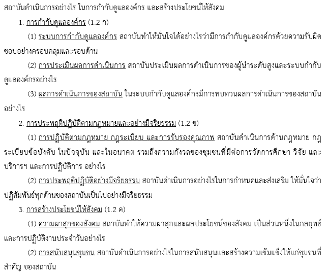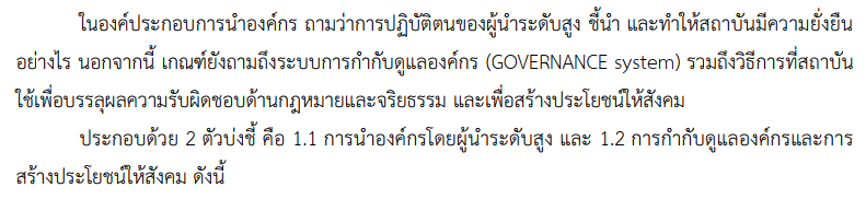 Criteria 1.2 การกำกับดูแลองค์กร และการสร้างประโยชน์ให้สังคม (GOVERNANCE and Societal Contributions)