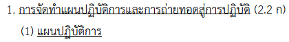 | 1. การจัดทำแผนปฏิบัติการและการถ่ายทอดสู่การปฏิบัติ | ||