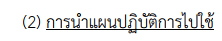 | (1) แผนปฏิบัติการ (2) การนำแผนปฏิบัติการไปใช้ (1 คะแนน) | / | 1 |