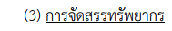 | (3) การจัดสรรทรัพยากร (4) แผนด้านบุคลากร (1 คะแนน) | / | 1 |