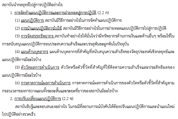 Criteria 2.2 การนำกลยุทธ์ไปปฏิบัติ (Strategy Implementation)