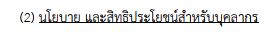 | (2) นโยบาย และสิทธิประโยชน์สำหรับบุคลากร (1 คะแนน) | / | 1 |