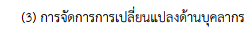| (3) การจัดการการเปลี่ยนแปลงด้านบุคลากร (1 คะแนน) | / | 1 |