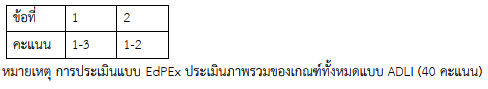 | เกณฑ์คุณภาพ | ประเมินตนเอง | คะแนน |