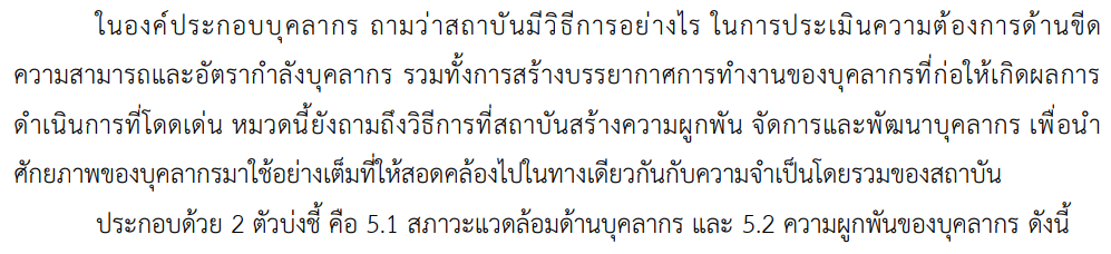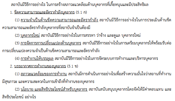 Criteria 5.1 สภาวะแวดล้อมด้านบุคลากร (WORKFORCE Environment)